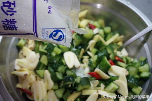 - 调味拌匀:将腌制好的黄瓜条加入蒜末、辣椒、醋、盐、糖等调料,拌匀即可。